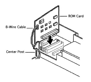 非バックライトタイプをバックライトタイプにアップグレードするROMカードの実物を私はまだ見た事がありませんが,Service SourceにはちゃんとこのROMカードを用いたアップグレード方法が記載されています.ディスプレイコネクタをROMカードにさし,そのカードをロジックボードに取り付けるという構造です.