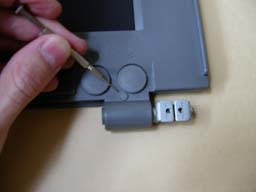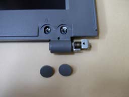 ディスプレイ下部,左右にある小さなゴムカバーを精密マイナスドライバー等で取り去ります.