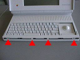 爪の外し方としては,▲の部分にマイナスドライバー等を差し込んでも良いですが(MACLIFEの1997年8月号にはそのように書いてあります),下手するとキズが入ります.