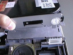 ハードディスクは2箇所の爪で固定されているので(すぐ外れます),これを解除して取り外します.