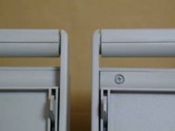 ディスプレイユニットによっては図中右のようにディスプレイ上方にネジ(左右計2個)があるタイプが存在します.ネジのあるユニットではこれを外しておきます.