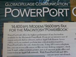 「サードパーティ製Portableアクセサリ(RAMとモデムアダプタ)」の項で御紹介しましたDynamic Engineering社製モデムアダプタは,Global Village Communication社製PowerPort Platinumモデム(PowerBook 1XXシリーズ用)を装着してPortable用内蔵モデムとして,28,800bps通信を可能とするアダプタです.ところが私がこのアダプタを購入した1999年当時,Platinumモデムは入手出来なくなっていました.私が持っていたのはやはりGlobal Village Communication社製から出ていて容易に入手出来たPowerBook 1XXシリーズ用PowerPort Goldモデムでした.「Goldモデムは使えないのか?」とDynamic Engineering社の担当者に尋ねましたが,「Platinumモデムに最適化してあるので,多分駄目じゃないか?」という御返事でした.その後Platinumモデムを探し続けたのですが,結局手に入らず終いでした.