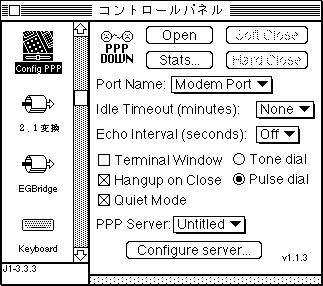 次に,漢字Talk 6.0.7でネットに繋ぐための設定をしなければなりません.