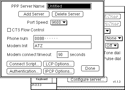 アクセスポイント電話番号を「Phone num」に入力します.「Modem Init」には「ATZ」と入れておけば良いでしょう.