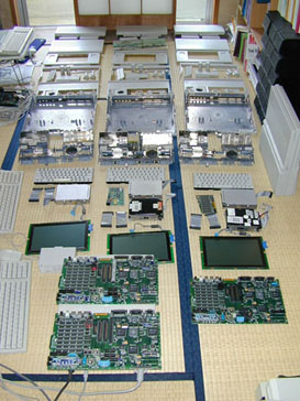 Portableが3台分のパーツです.右側に1台だけ分解されていないPortable(バックライトタイプ)があります.