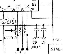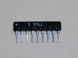 これを例にとると,●印のついた端子を共通として8本の1KΩ抵抗が入っています.