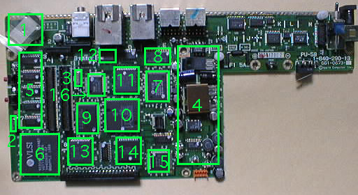 - 10:Combo〜SCSIとシリアルポートのコントローラ(AM85C80);U12