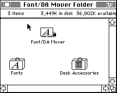 フォントやデスクアクセサリをシステムにインストールするためには,この「Font/DA Mover」というユーティリティを使います.