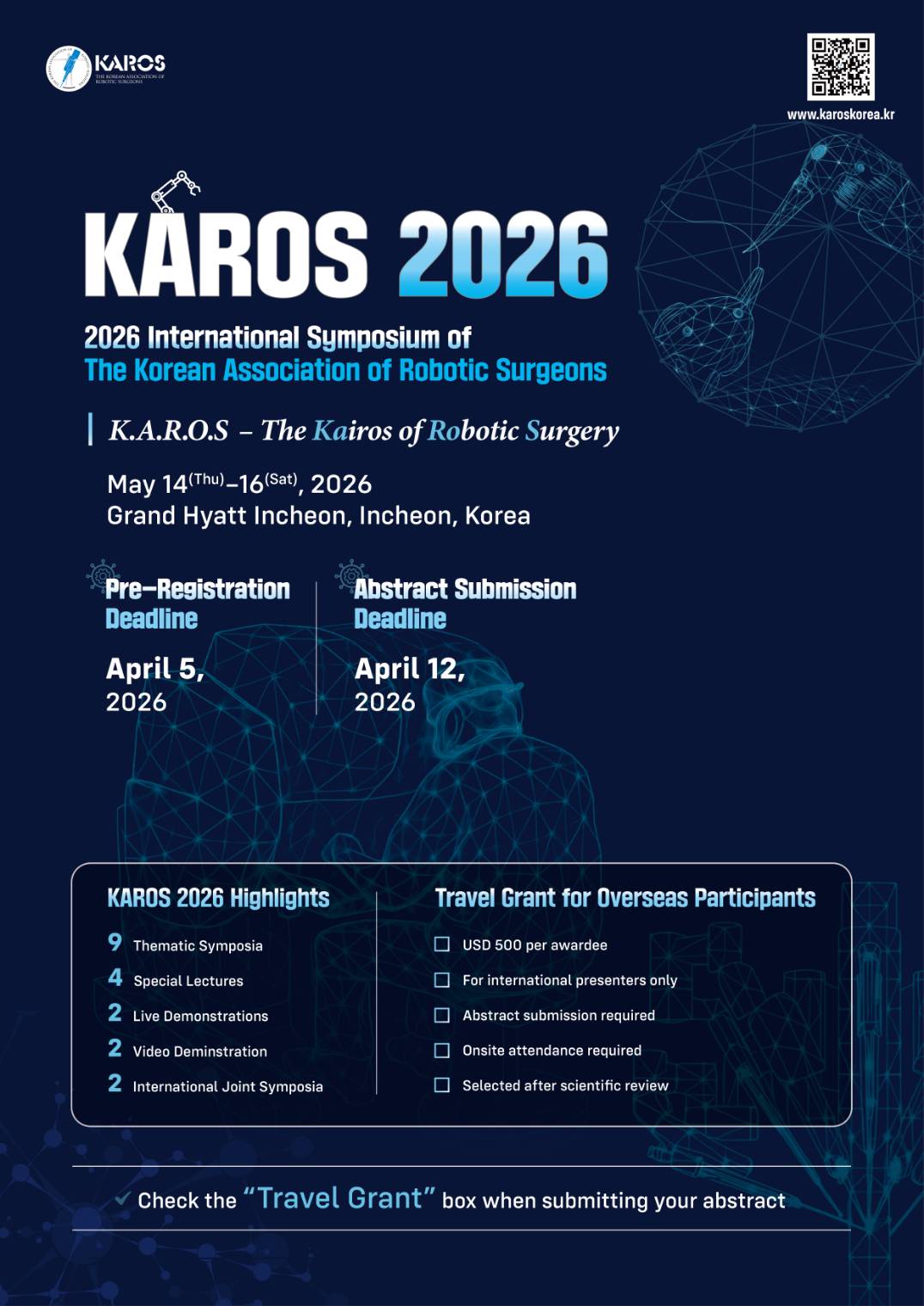 このたび、Kang教授(Yonsei University)より、韓国ロボット外科学会国際シンポジウム(KAROS 2026 International Symposium)の御案内がありました。