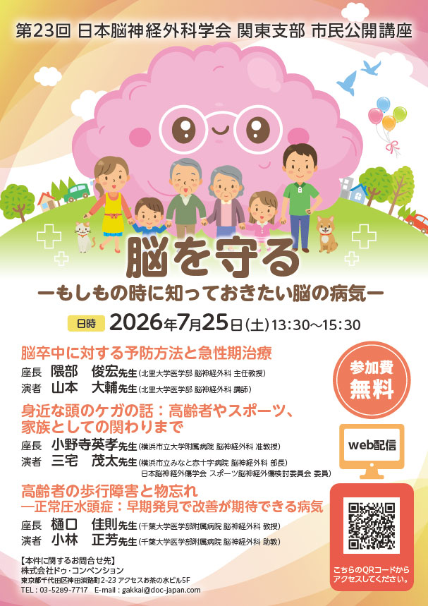 | 2026.4.8 | 第23回(一社)日本脳神経外科学会 関東支部 市民公開講座を追加しました。 |