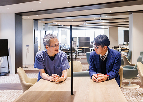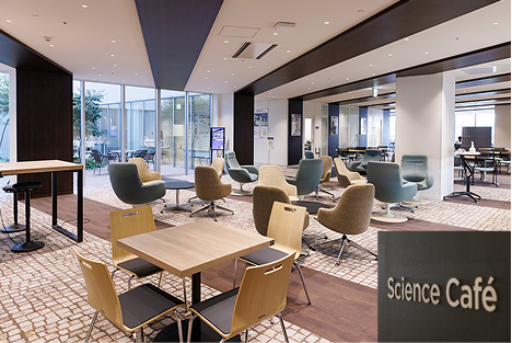 ここは単なる医療機関としての枠を超え、企業の研究施設や自治体と連携した「医療クラスター(産業集積拠点)」の中核としての役割も担っており、隣接する棟には企業も在籍。また、講演会などがオープンに開催されるカフェも併設されています。