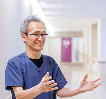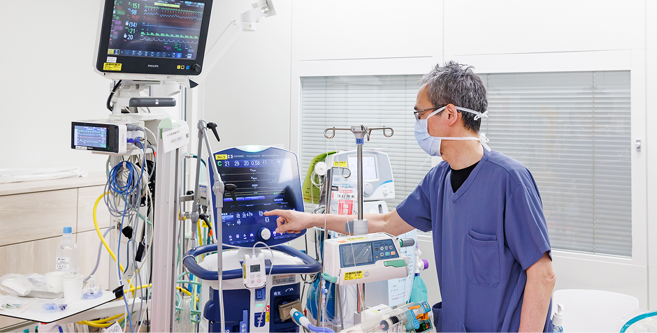 「呼吸」は停止すれば即座に命に関わり、生命維持に直結する最も基本的な機能。それだけに医療における「呼吸療法」が必要になる場面は多岐にわたり、主に手術後や重症疾患によって呼吸機能が低下し、酸素投与や人工呼吸が必要となった患者さんには重要です。「呼吸療法において私たちが決して忘れてはならないのは、呼吸困難は人間にとって『最大級の苦痛』であるという事実です。息ができないという恐怖は、パニックを引き起こします。急性期であれ慢性期であれ、患者さんにとって『呼吸が楽になる』ことの価値は、計り知れないほど大きいのです」と語る竹内医師は、呼吸療法とは単に人工呼吸器のスイッチを入れるだけではなく、「快適な呼吸」のためには様々なスキルが必要なため、より研究を深め、多くの人がその理解を深める重要性を感じているそう。現在、センター内には集中治療科が関与するICU(集中治療室)、PICU(小児集中治療室)をはじめ、CCU(心臓血管系集中治療室)、脳神経外科ICU・脳神経内科ICUなどの高度な集中治療エリアがあります。「私たちの目標は、超急性期から在宅患者さん、そして小児から成人まで、日本のどこにいても患者さんが適切な呼吸療法を受けられる基準を確立することです。そのために、医師、看護師だけでなく、臨床工学技士や理学療法士といった多職種がワンチームで動く体制を重視しています」と、呼吸療法の確立にも注力しています。