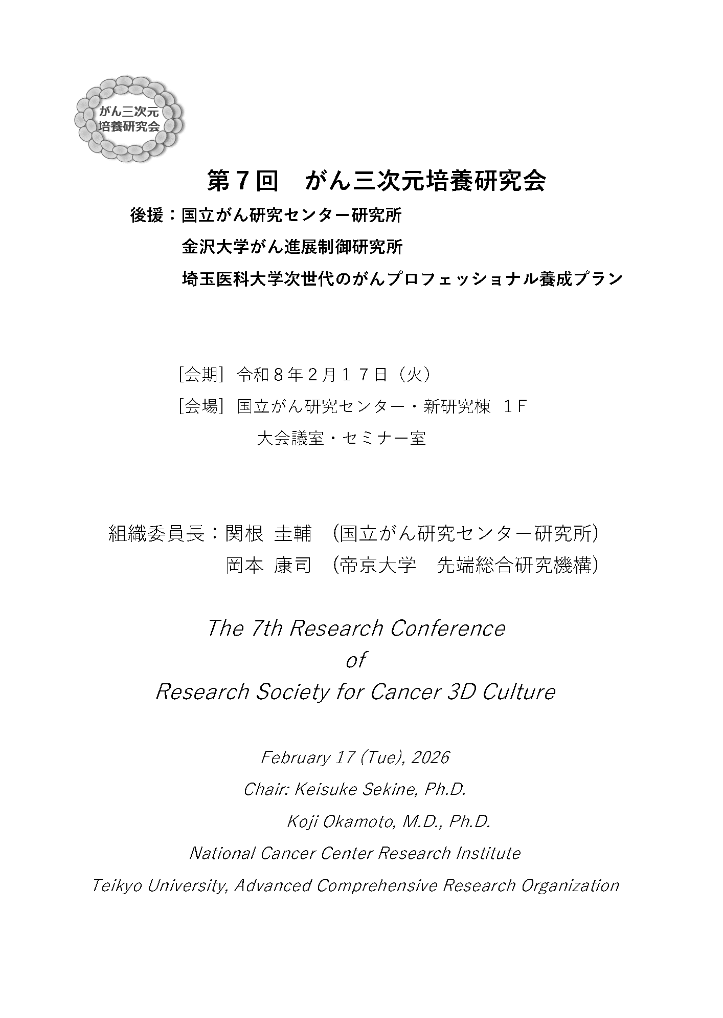(事務局:国立がん研究センター研究所・がん細胞システム研究ユニット 高山)