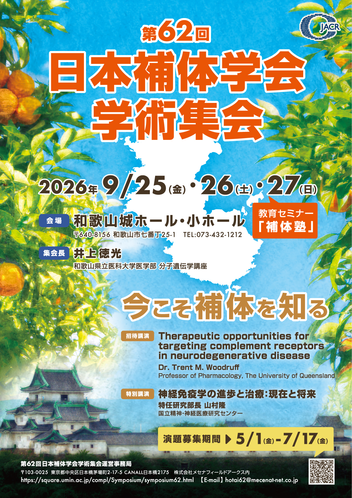第62回日本補体学会学術集会を和歌山市で開催いたします。