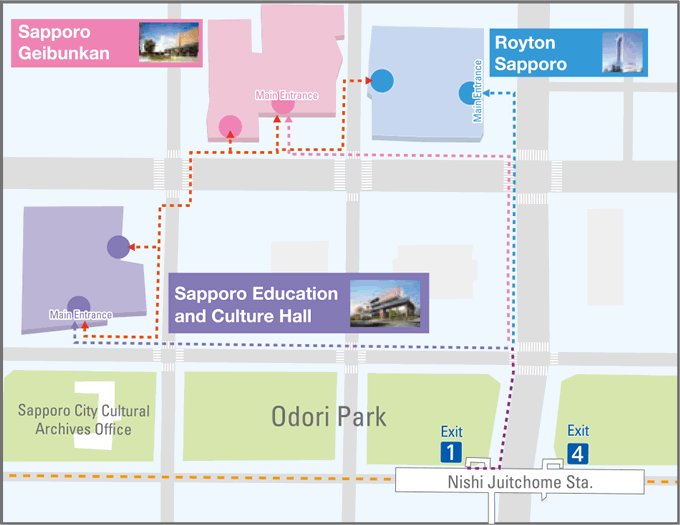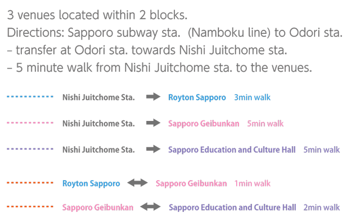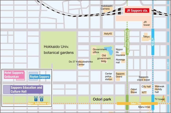 2. By train: Sapporo subway sta. to Nishi Juitchome sta. (approx. 11 minutes, 200 yen.)