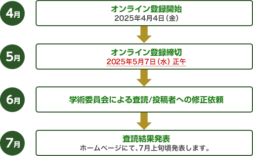 *本大会では査読等のスケジュールのため演題登録延長は一切受付いたしかねますので、ご理解とご協力のほどよろしくお願い申し上げます。