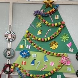 完成した作品がフロアに飾られ、少しずつクリスマス気分が高まっていきました。