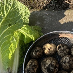 年明けのデイケアでは、畑で育てていた白菜の収穫を行ったり、初詣に出かけたりと、季節を感じながら楽しい時間を過ごしました。