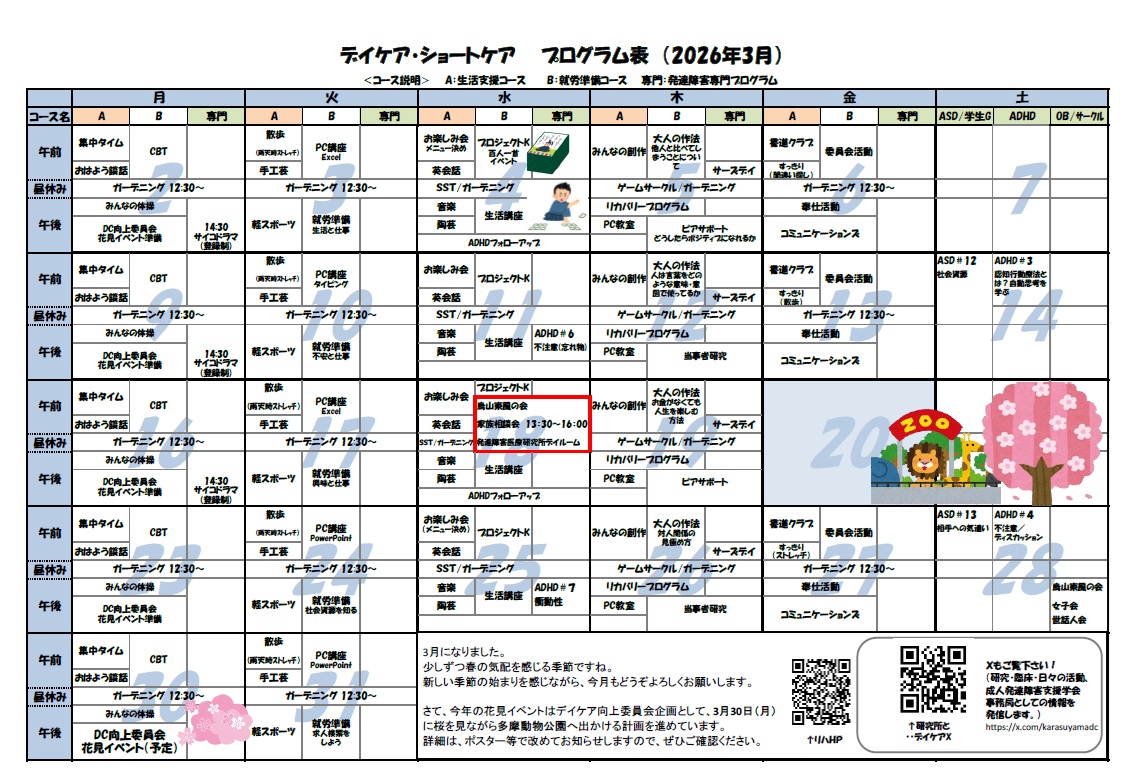 準備・運営に関わってくださったデイケア向上委員会のみなさん、そして参加してくださったみなさん、ありがとうございました。