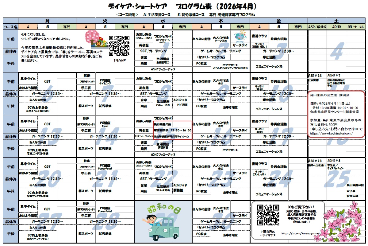 新しい年度も、日々の活動を大切にしながら、安心して過ごせる場づくりに努めてまいります。
